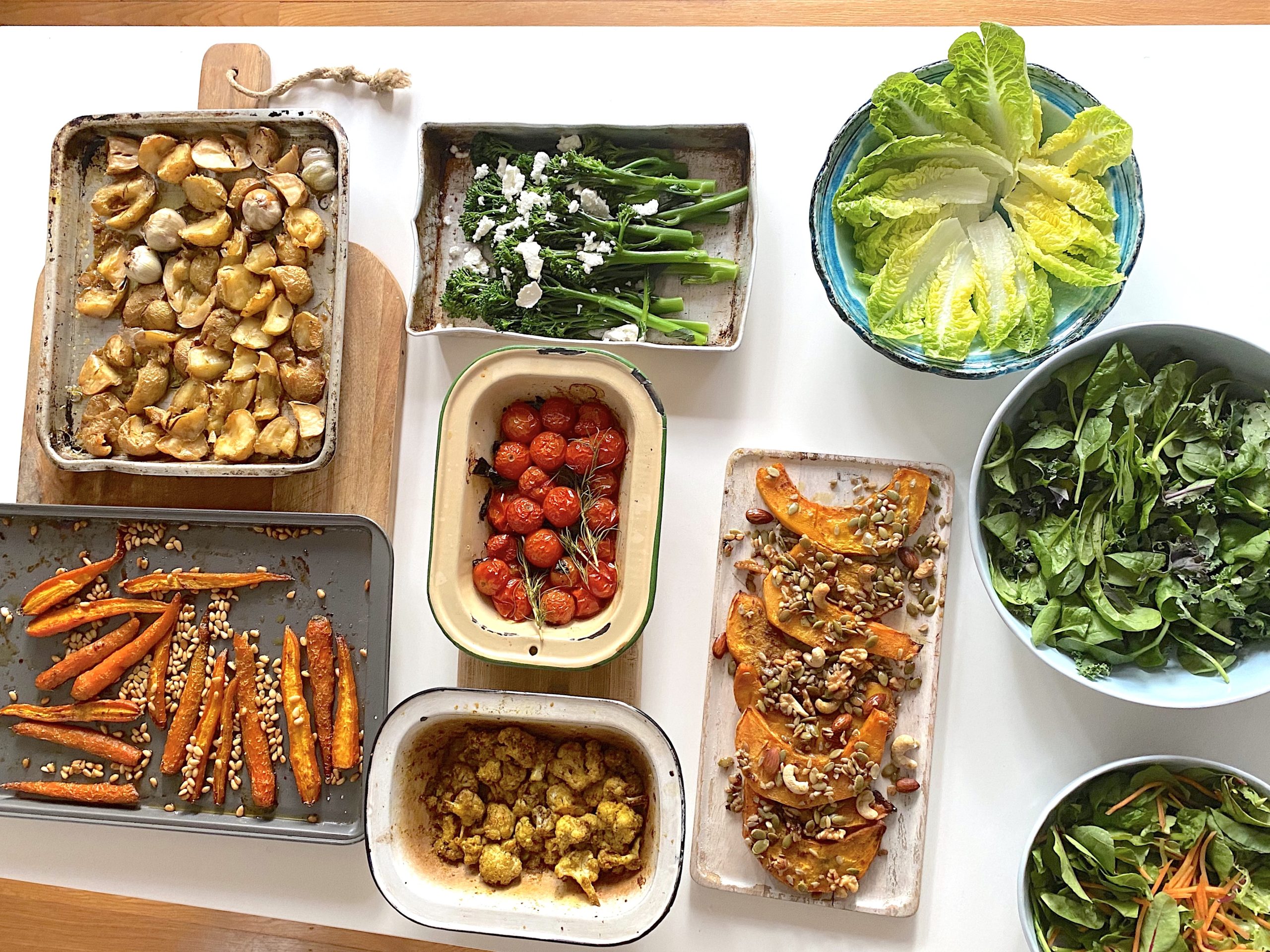 - Checking halfway through cooking. Five minutes before it’s cooked, sprinkle over the mixed nuts and seeds to roast. Remove from oven.