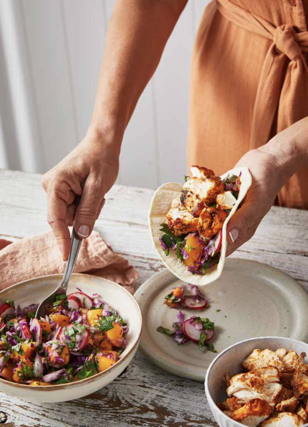 My tortillas also are a hit with the whole family and can be customised and adjusted to appropriate spice levels. And for my plant-based friends, I haven’t forgotten about you, just swap out the fish with grilled tempeh, which is equally delicious.
