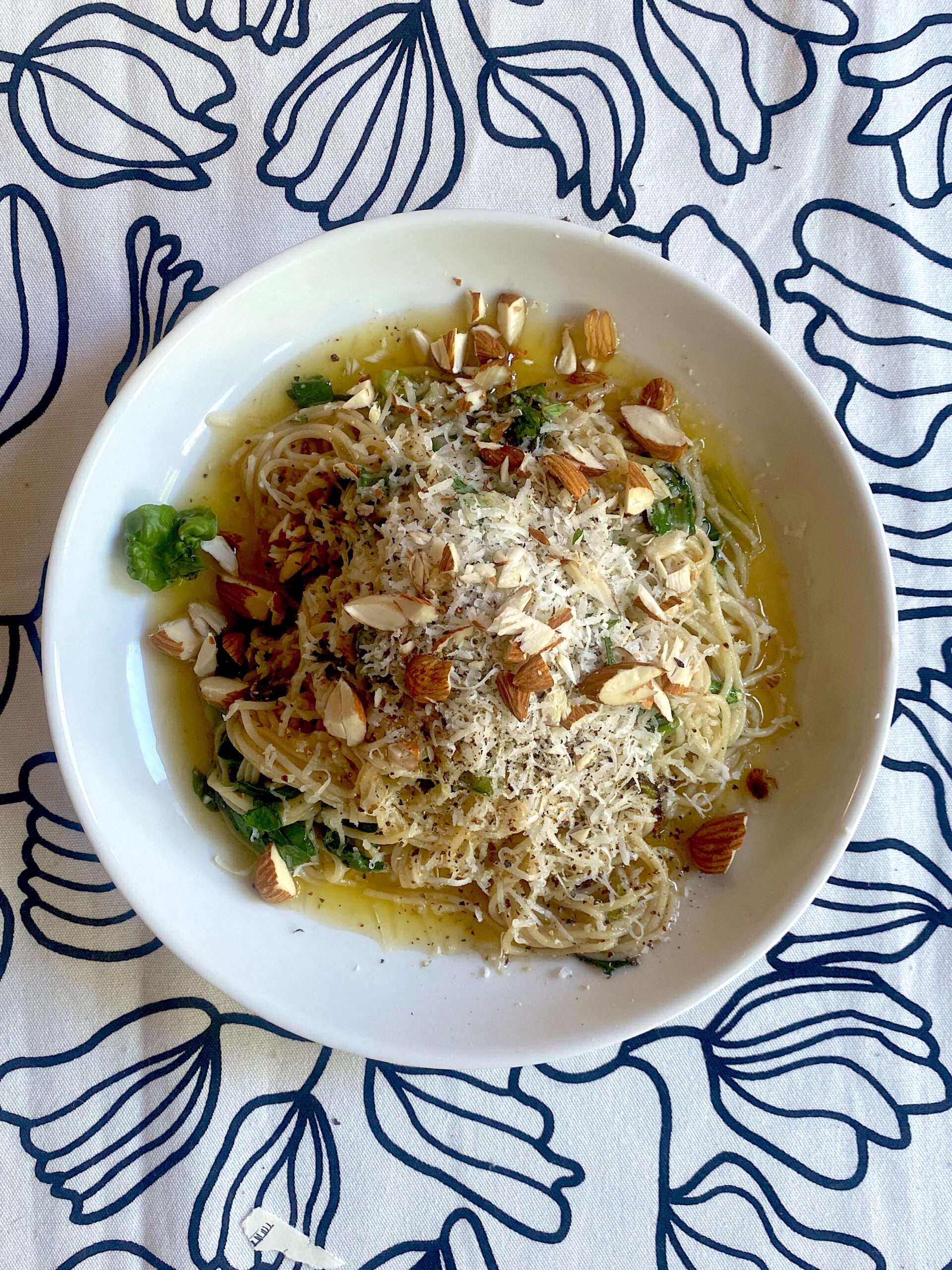 Spaghetti with Olive Oil, Garlic and Roasted Almonds Recipe